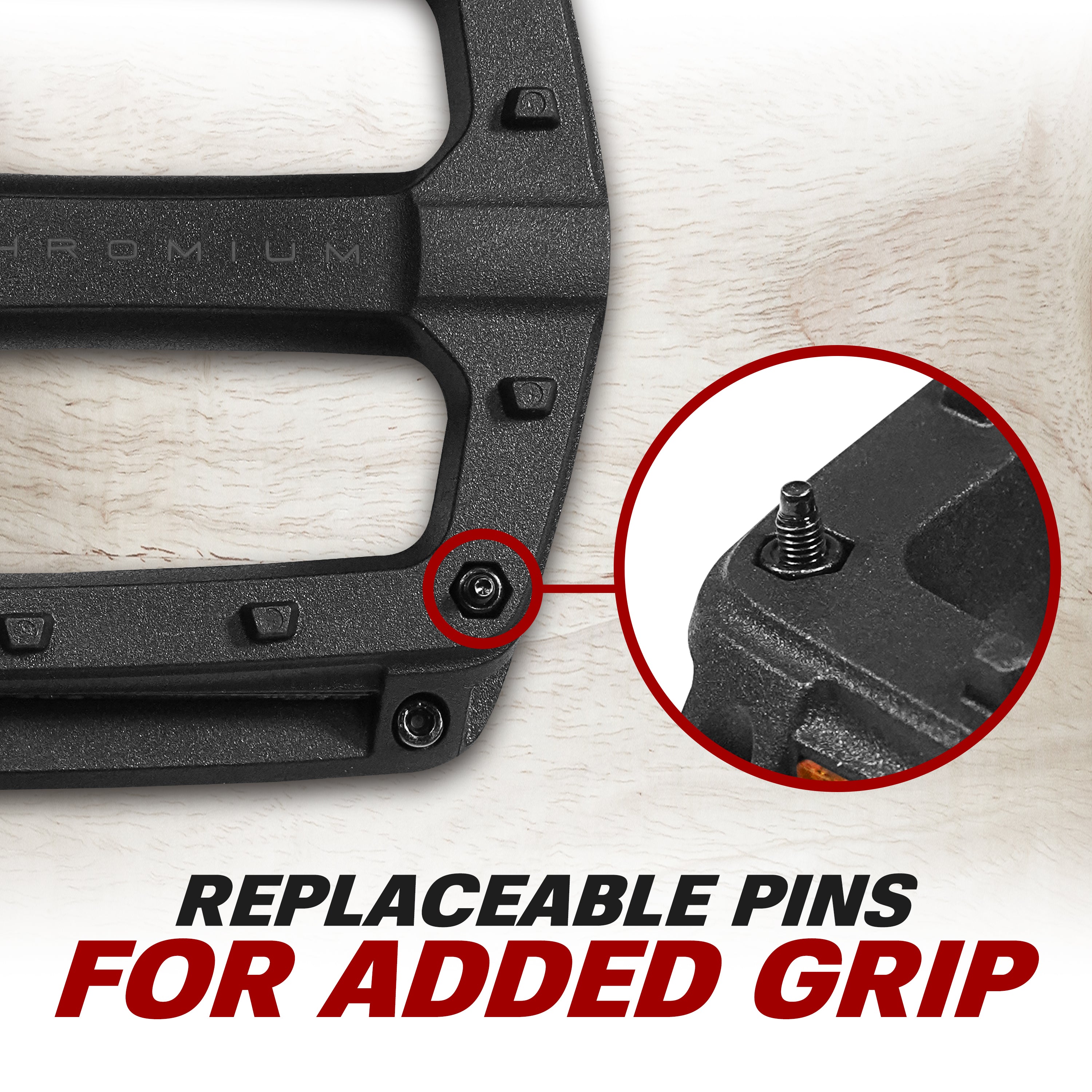 - Great Grip: 4 replaceable hex-head threaded traction pins per side offering more bite for better controlling.